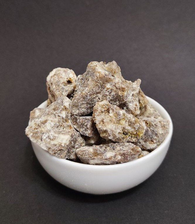 Смирна (Зелёная) - это прошедшая специальную обработку (очистку и переплавку) бензойная смола. Представляет собой куски зеленовато-серого цвета с вкраплением белых участков и обладает приятным терпким ароматом благодаря присутствию в ней ванилина, коричной и бензойной кислот. Бензойную смолу получают путём надрезов ствола и ветвей стираксового дерева (Styrax benzoin), дикорастущего и разводимого в Юго-Восточной Азии и на островах Малайского архипелага.