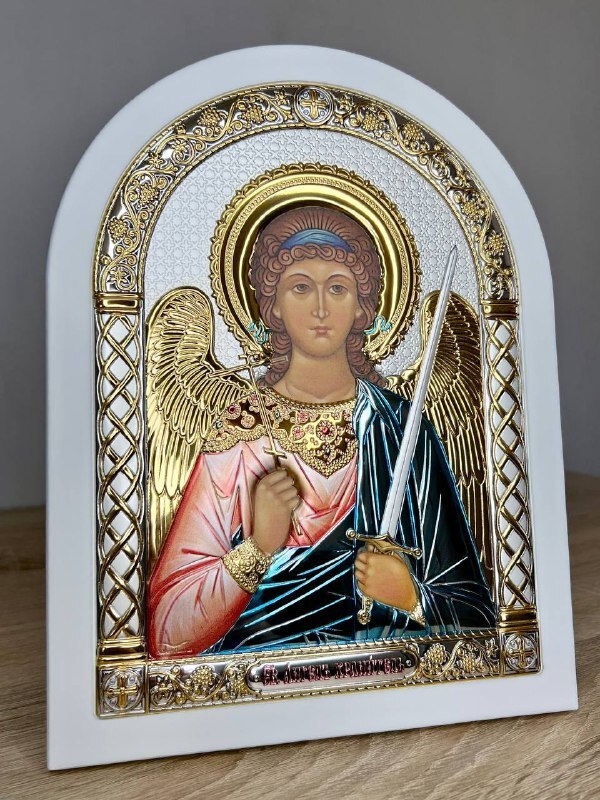 Ангел Хранитель, икона арочная, белое дерево, эмаль 206х275