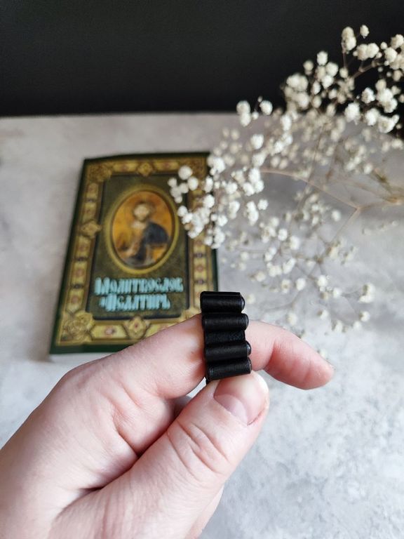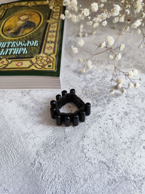 Чётки ручной работы Лестовка (Лествица) из натуральной кожи на 10 ступеней одеваются на палец и служат для подсчета молитв или поклонов.