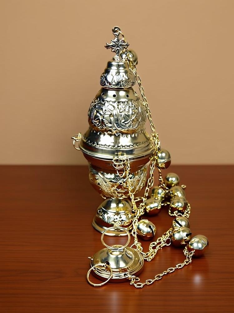 Кадило, латунь, чеканка, ручная работа, высота: 24 см., Ø: 9 см., вес: 560гр.