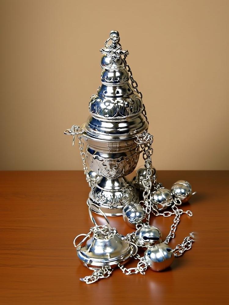 Кадило, латунь, чеканка, никелирование, высота: 19 см., Ø: 6 см., вес: 420гр.