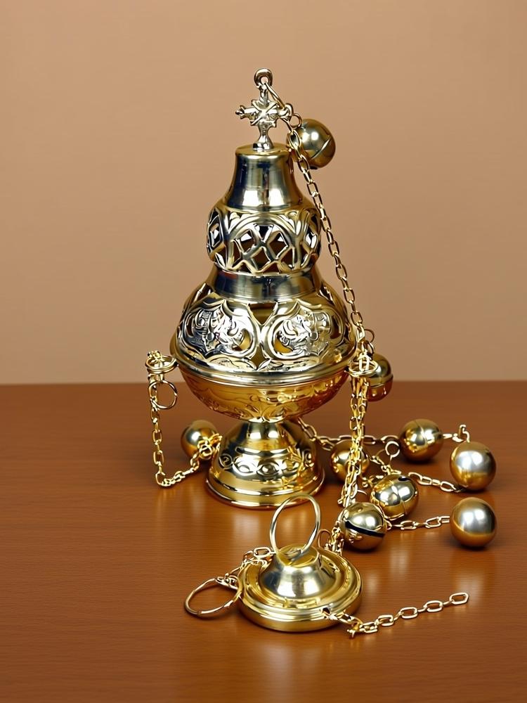 Кадило, латунь, чеканка, ручная работа, высота: 23 см., Ø: 10 см., вес: 530гр.