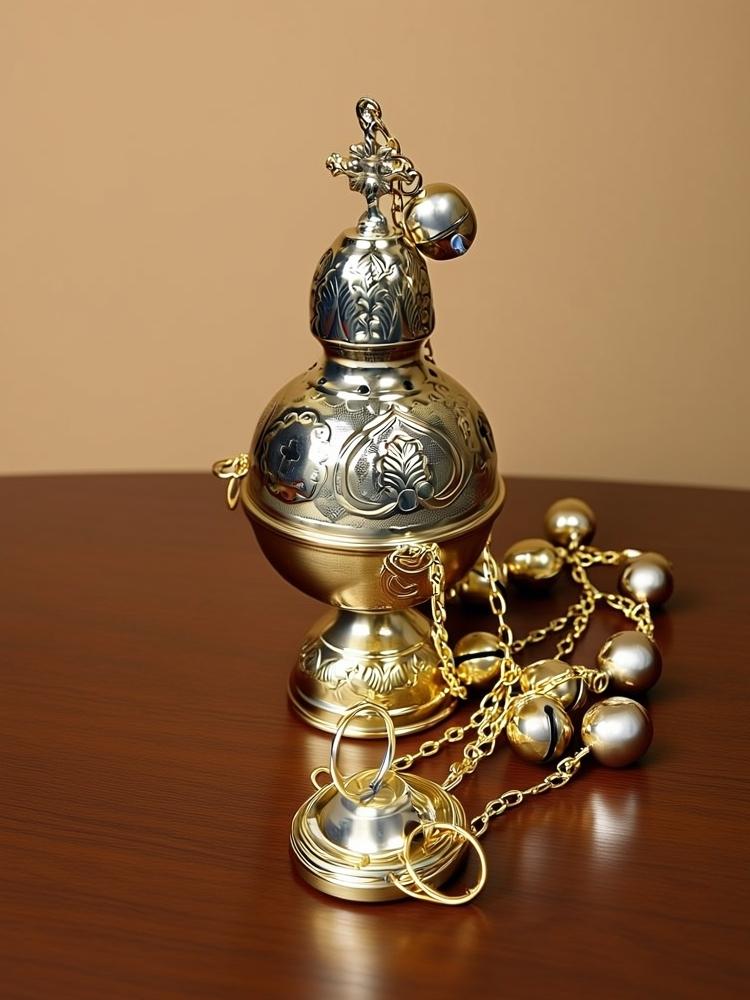 Кадило, высота: 21 см., Ø: 10 см., латунь, чеканка, ручная работа, вес: 540гр.