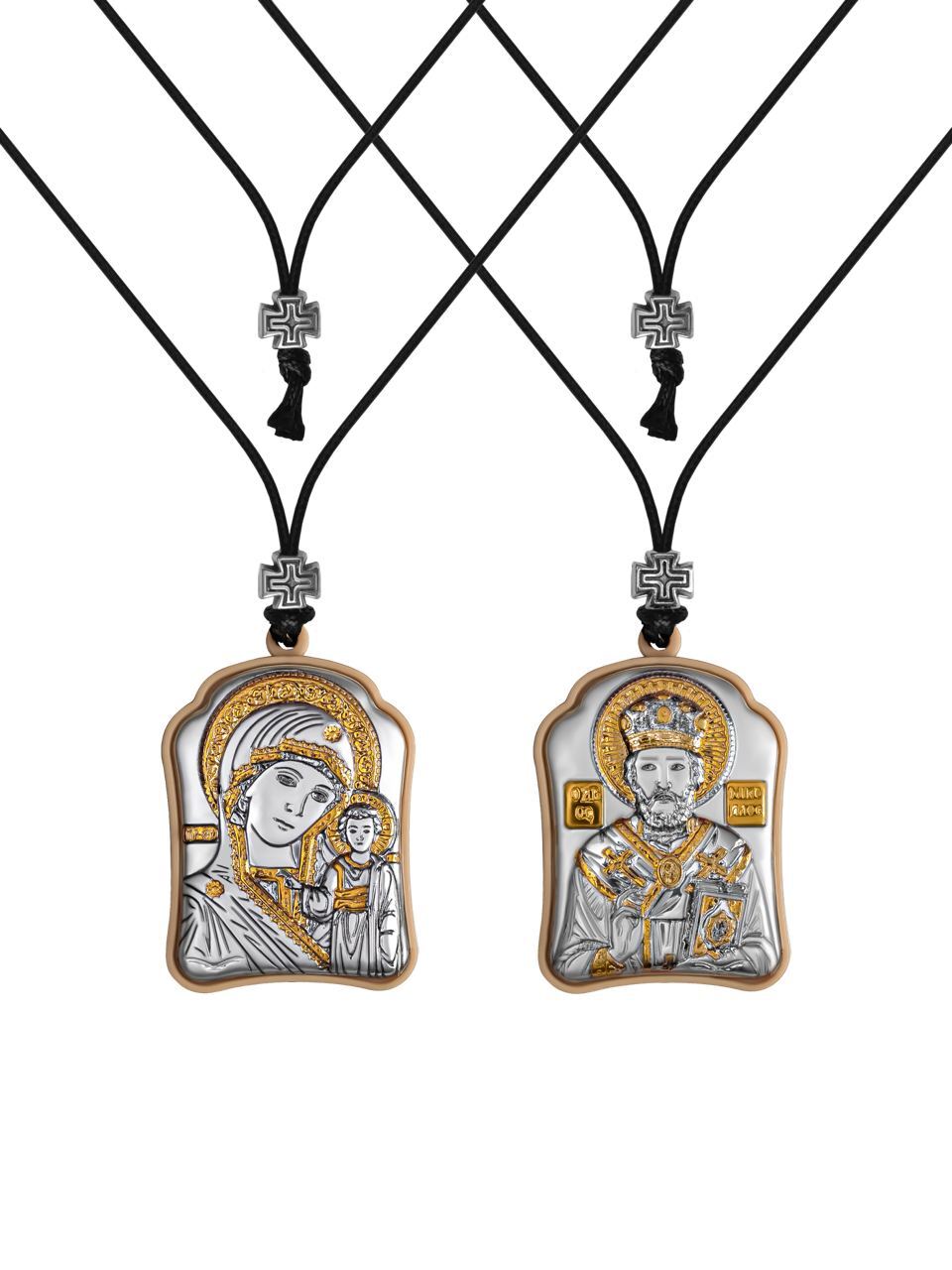 Казанская БМ-Николай Чудотворец, подвеска 2х стороняя 30х40мм серебряная Греческая.