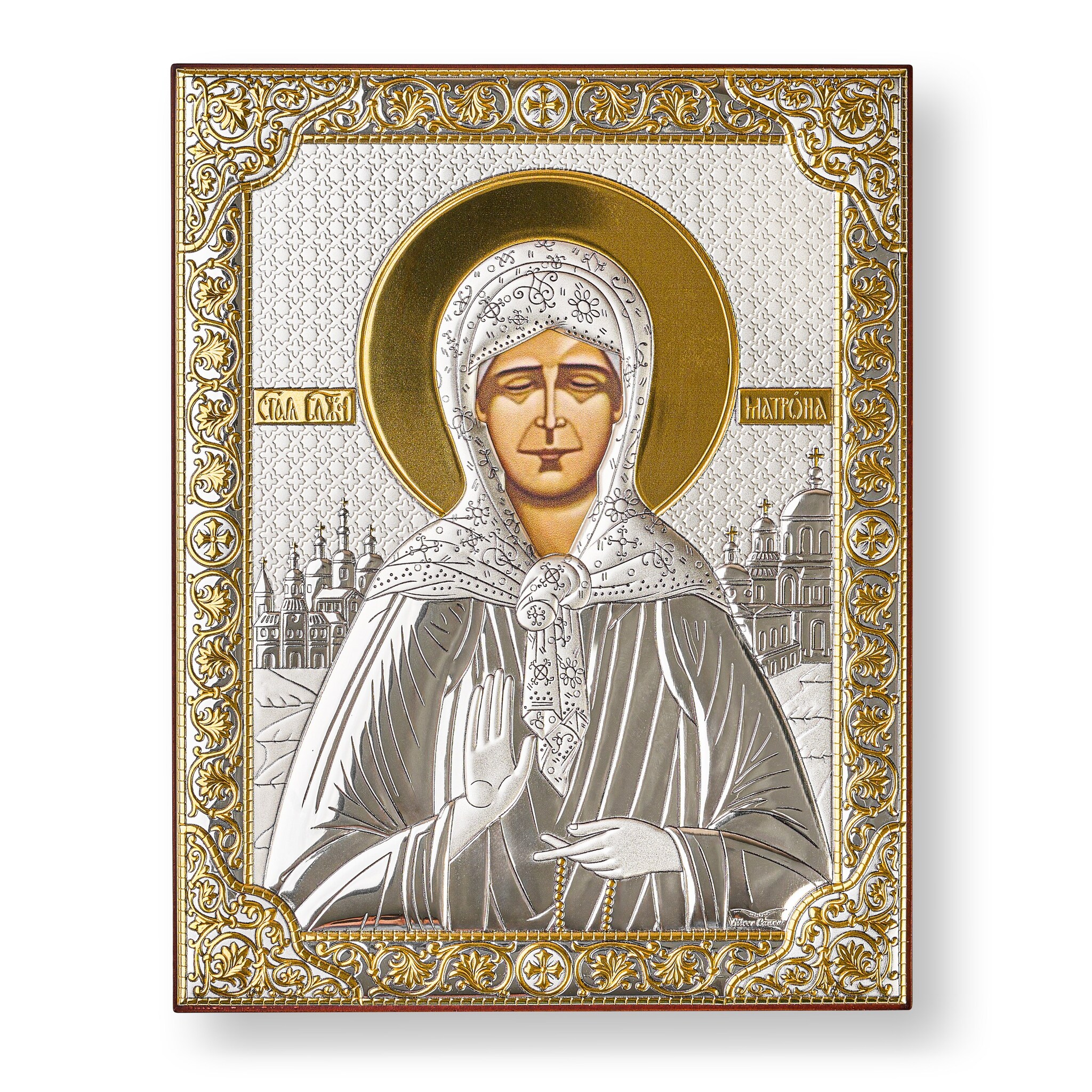 Матрона, икона прямоугольная без рамки, красное дерево 120х160мм серебряная Греческая.