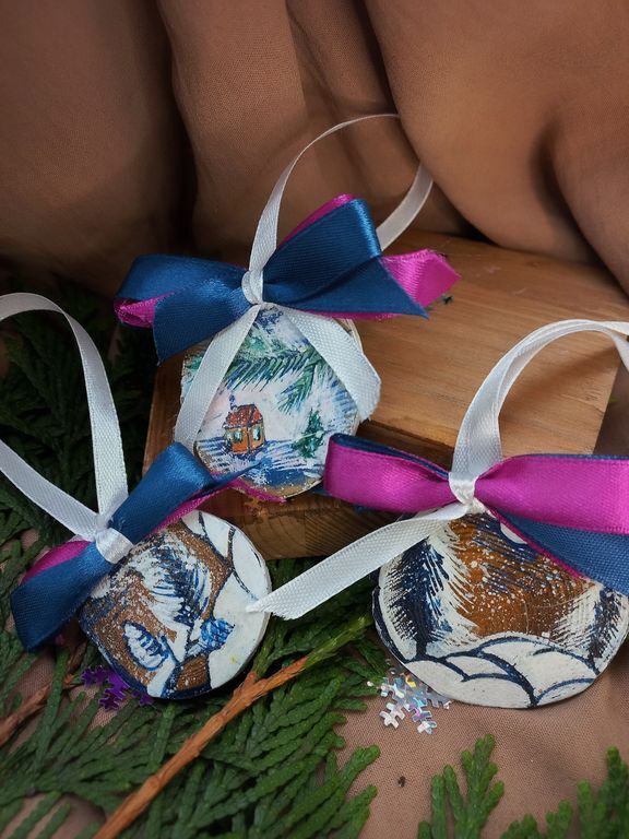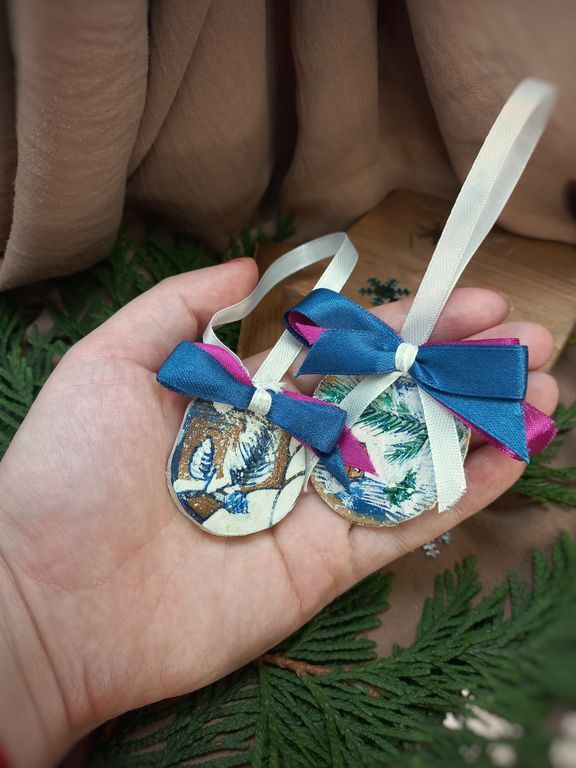 Эксклюзивные украшения для дома и ёлки от мастерской "Мир.Любовь.Керамика".Все изделия выполнены полностью вручную на спилах дерева и доске, поэтому серии ограничены.