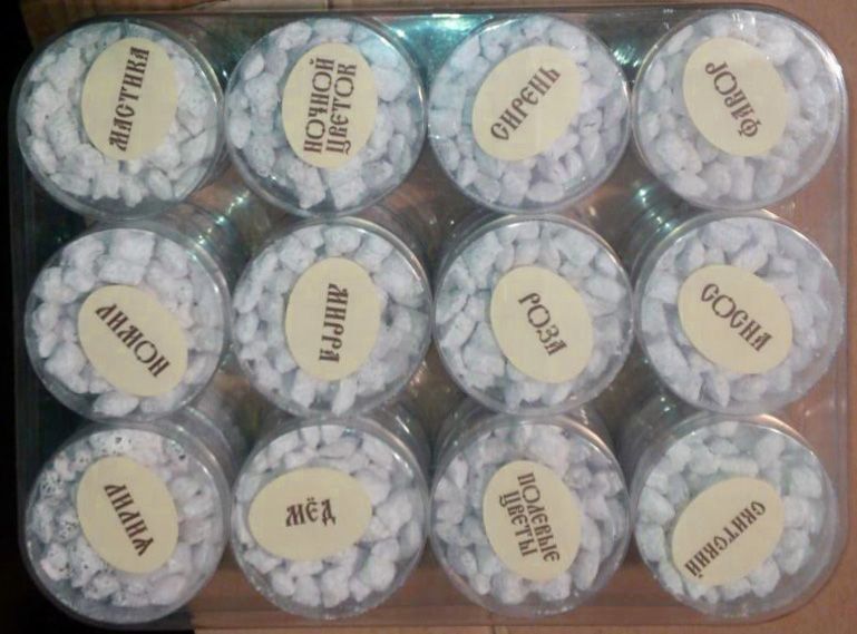 Товар доступен ПОД ЗАКАЗ по предоплате (~3-7 дней)! 24 баночки по 40 г разных ароматов, упакованных в аккуратную пластиковую упаковку. Ладан греческого производства из города Салоники. Выполнен из смолы Олибанум с добавлением качественных благовоний. Твёрдый, в белой обсыпке, шарики чуть приплюснутые. Аромат приятный, сочный, после прогорания не издаёт резкого неприятного запаха. По углю не растекается, лежит кусочком. Не резкий, хорошо подходит для небольших и средних храмов.