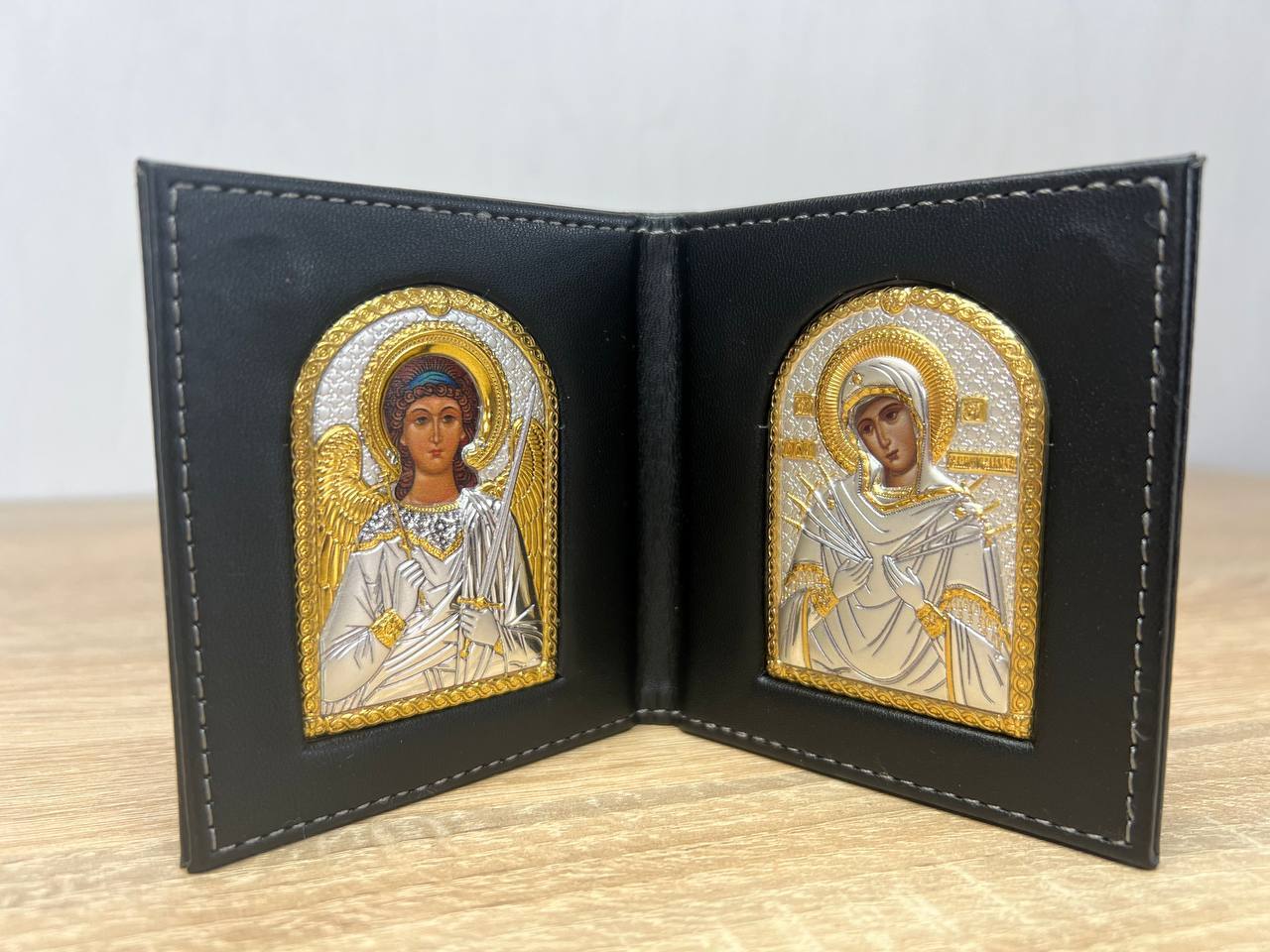 Складень карманный Семистрельная Ангел 95х105мм икона серебряная Греческая