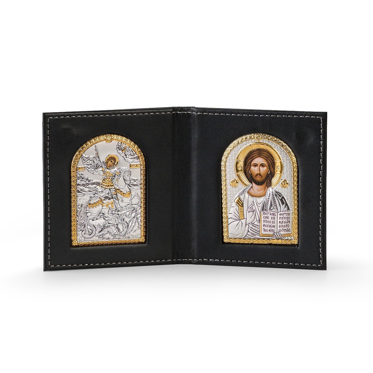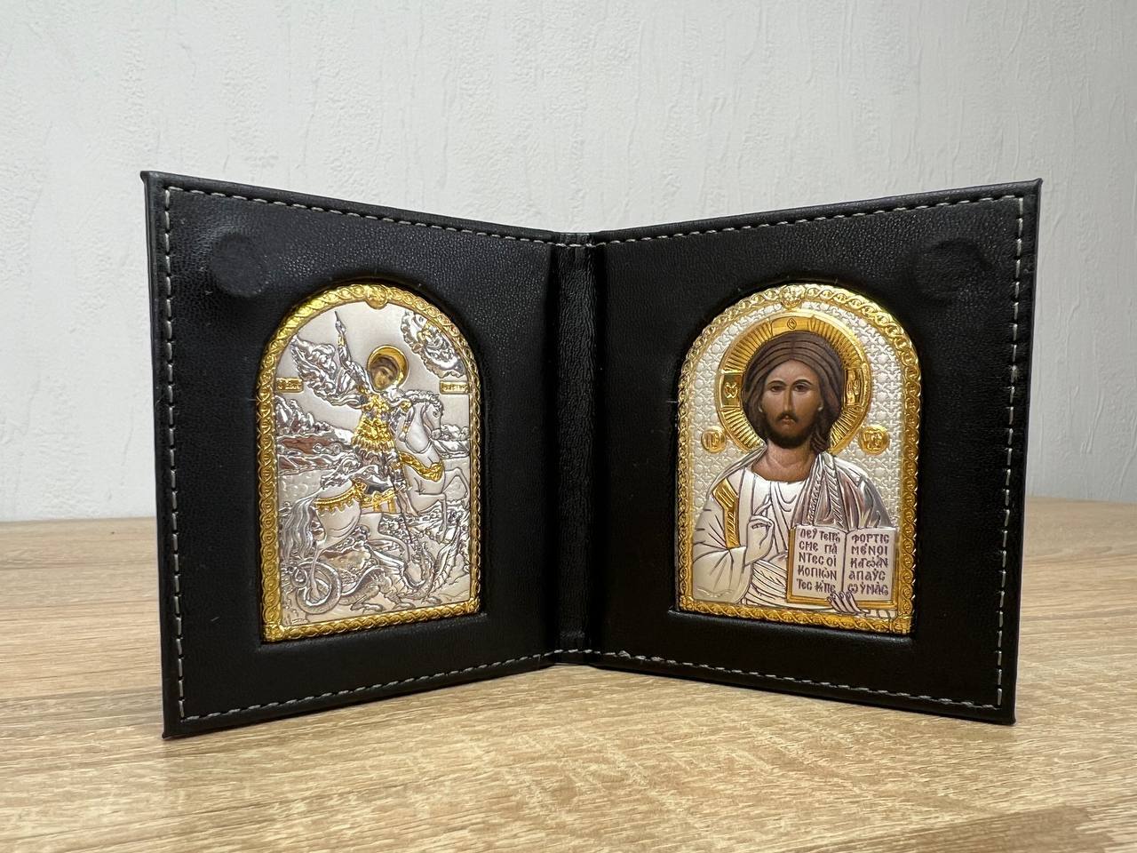 Складень карманный Спаситель Георгий 95х105мм икона серебряная Греческая