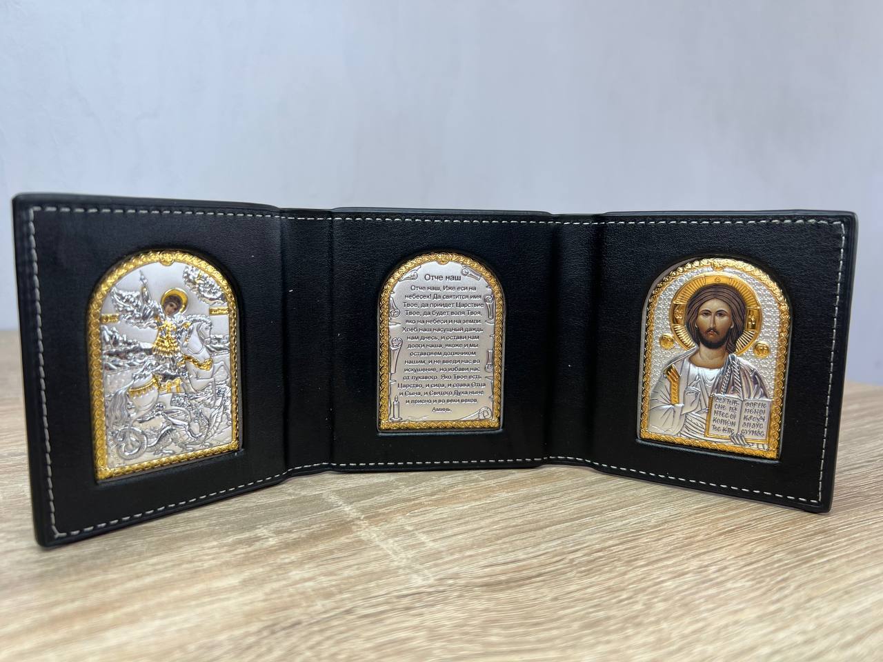 Складень карманный Спаситель Молитва Георгий 90х255мм икона серебряная Греческая
