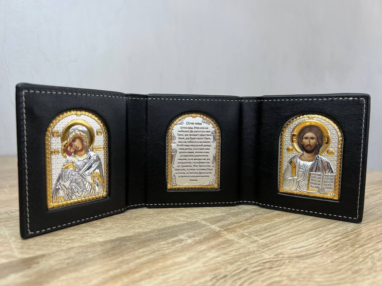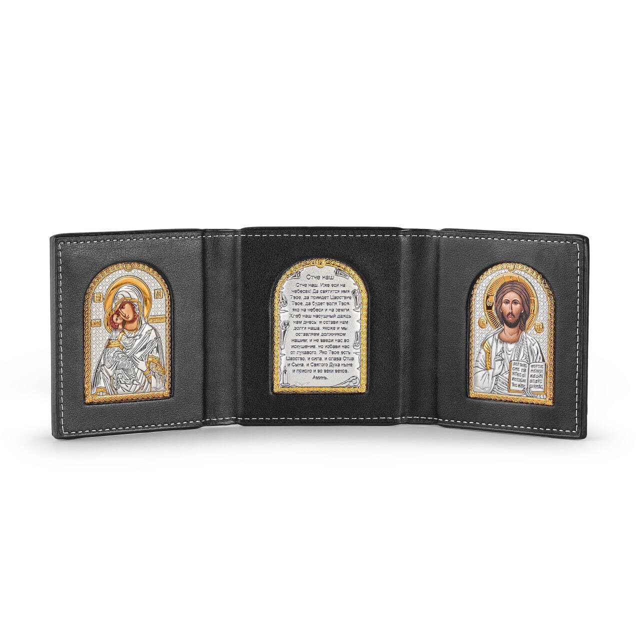 Складень карманный Спаситель Молитва Владимирская 90х255мм икона серебряная Греческая