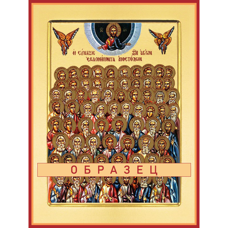 Четьи-Минеи указывают следующие имена: Иаков Праведный, брат Господень; Марк евангелист; Лука евангелист; Клеопа, брат Иосифа Обручника; Симеон, сын Клеопы; Варнава; Иосиф, или Иосия, прозываемый Варсавой или Иустом; Фаддей; Анания; Стефан архидиакон; Филипп; Прохор; Никанор; Тимон; Пармен; Тимофей; Тит; Филимон; Онисим; Епафрас; Архипп; Сила; Силуан; Крискент, или Криск; Крисп; Епенет; Андроник; Стахий; Амплий; Урван; Наркисс; Апеллий, или Апелл; Аристовул; Иродион, или Родион; Агав; Руф; Асинкрит; Флегонт; Ерма; Патров; Ермий; Лин; Гаий; Филолог; Лукий; Иасон; Сосипатр; Олимпан, или Олимп; Тертий; Ераст; Куарт, или Кварт; Евод; Онисифор; Климент, или Клим; Сосфен; Аполлос; Тихик; Епафродит; Карп; Кодрат; Марк, он же Иоанн; Зина; Аристарх; Пуд; Трофим; Марк, племянник Варнавы; Артема; Акила; Фортунат; Ахаик. Св. Димитрий Ростовский внес в список еще 2 имени: Дионисий Ареопагит и Симеон, по прозванию Нигер.