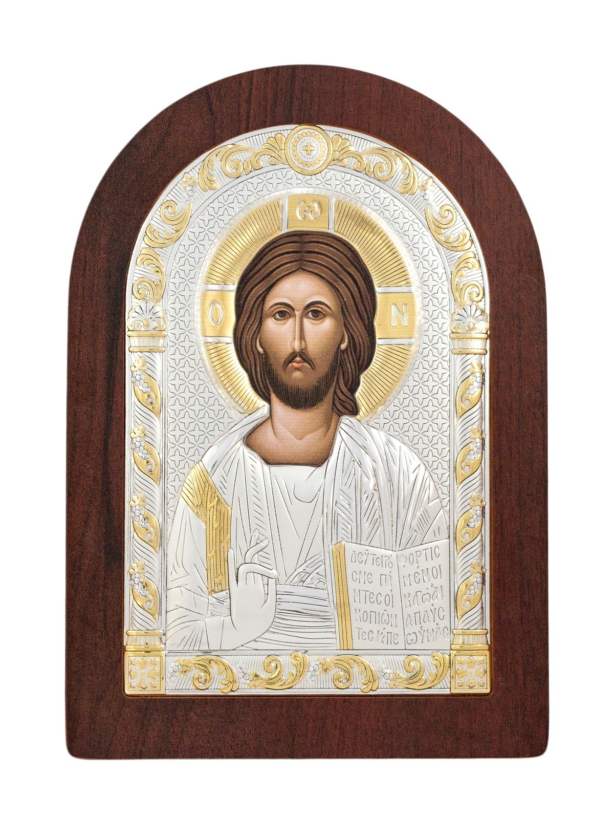 Спаситель, икона арочная, красное дерево 75х103мм серебряная Греческая.