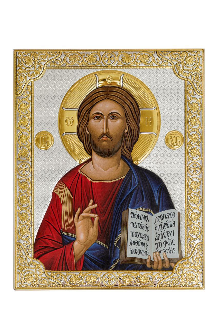 Спаситель, икона прямоугольная без рамки, античная 180х230мм серебряная Греческая.