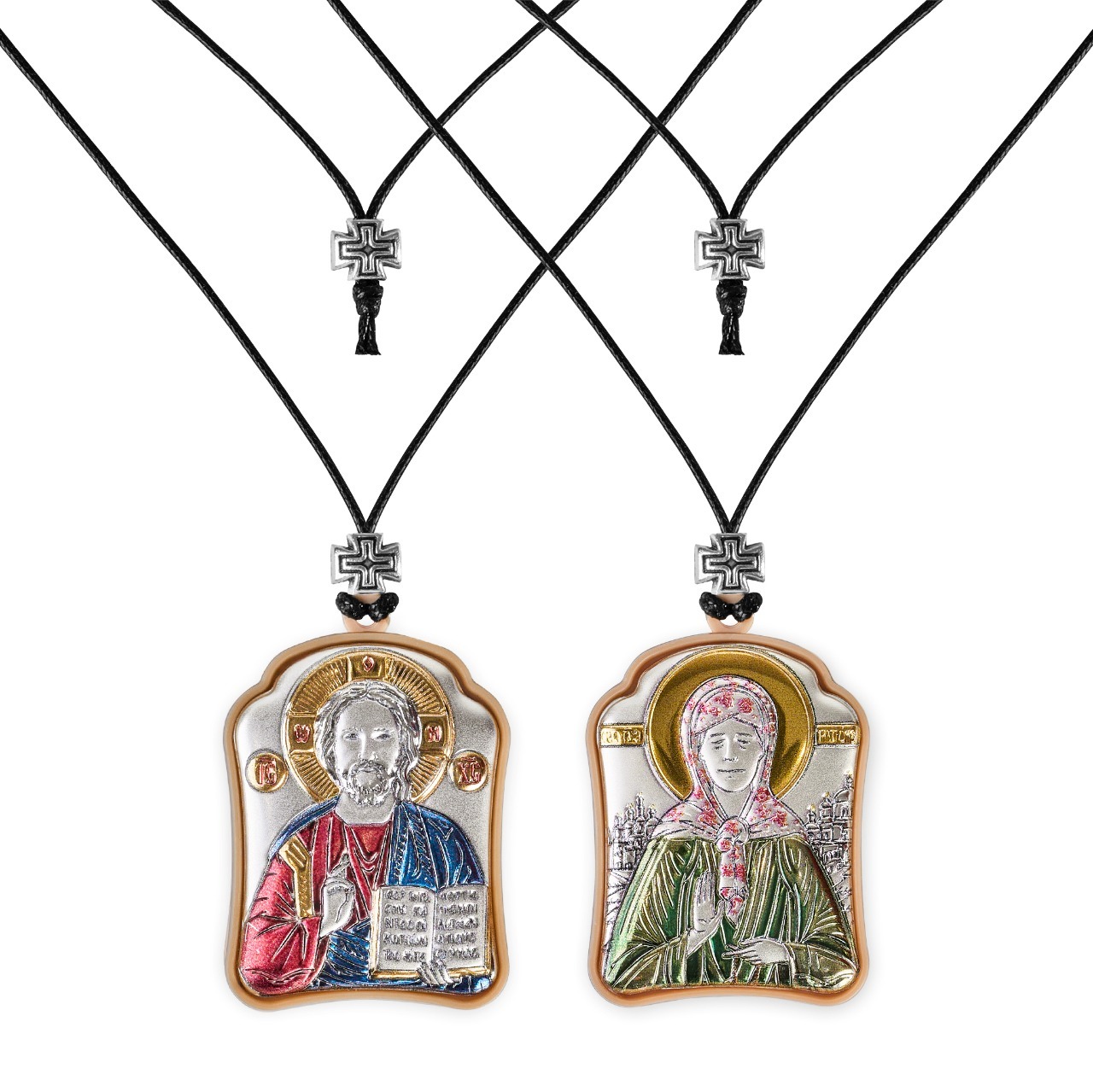 Спаситель-Матрона, подвеска 2х стороняя, эмаль 30х40 серебряная Греческая.