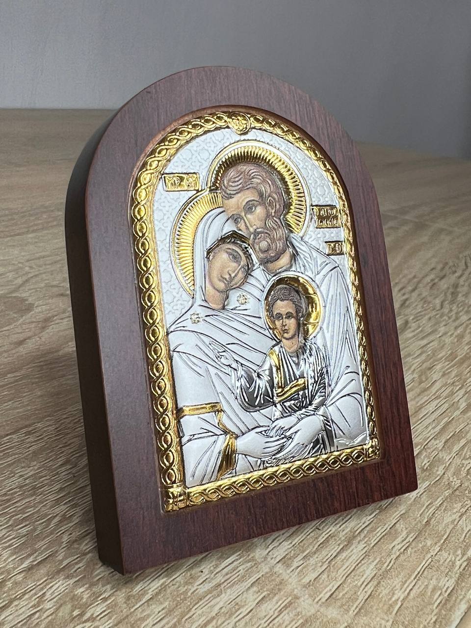 Св. Семейство, икона арочная, красное дерево, 86х112мм серебряная Греческая.