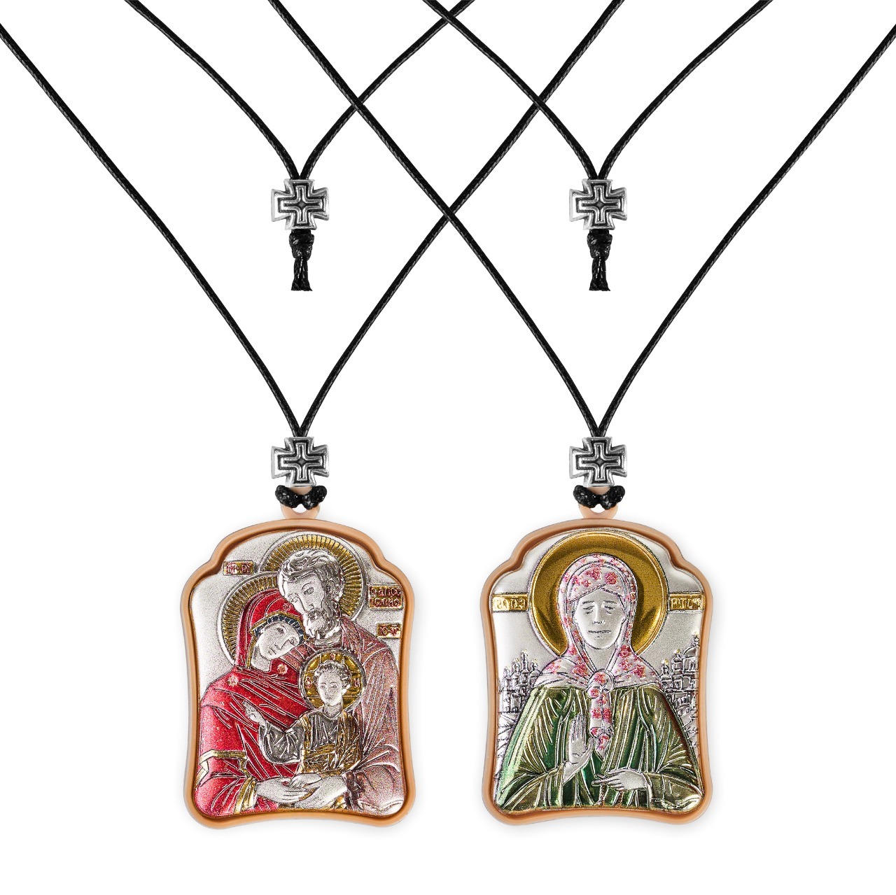 Св. Семейство-Матрона, подвеска 2хсторонняя, эмаль 30х40