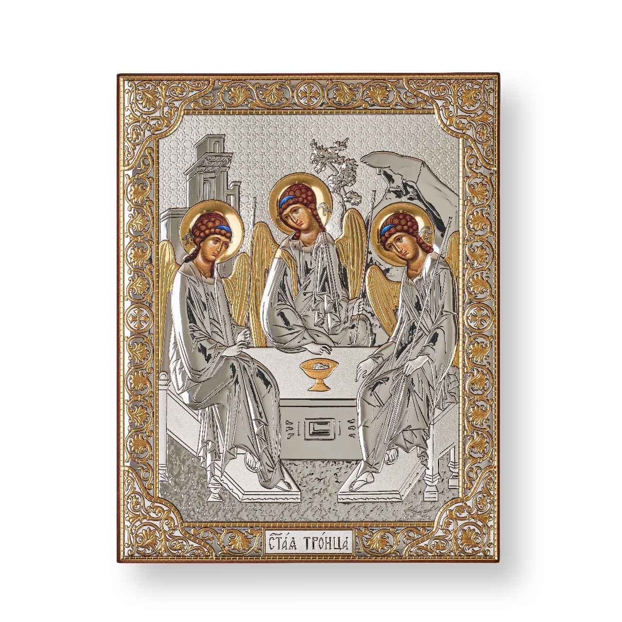 Св. Троица, икона прямоугольная без рамки, красное дерево 175х225мм серебряная Греческая.
