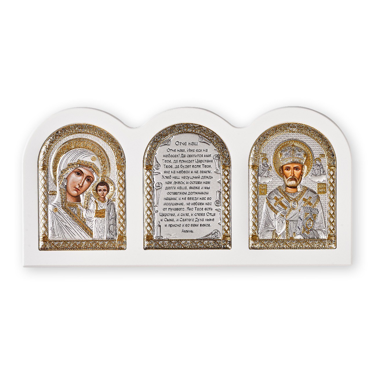 Триптих, Казанская БМ, Николай, Молитва, икона, белое дерево 320х164